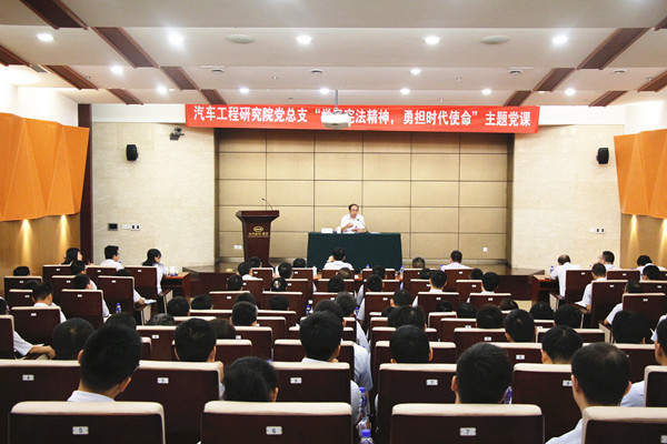 2018年6月8日,中汽中心董事長(zhǎng)、黨委書記、總經(jīng)理于凱走進(jìn)汽車工程研究院黨總支,專題講解“學(xué)習(xí)憲法精神,加快法治建設(shè)”主題黨課。中汽中心辦公室主任王今、工程院黨總支書記高繼東、副書記馬杰、委員龔進(jìn)峰、李洪亮等120人參加黨課學(xué)習(xí)。