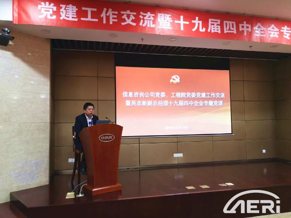 2019年12月19日,中汽中心黨委委員、副總經(jīng)理吳志新到信息咨詢(xún)公司黨委和工程院黨委講授“深入學(xué)習(xí)貫徹黨的十九屆四中全會(huì)精神”專(zhuān)題黨課,信息咨詢(xún)公司黨委書(shū)記程魁玉、工程院黨委書(shū)記高繼東以及120余名黨員代表參會(huì)。工程院黨委副書(shū)記馬杰主持會(huì)議。